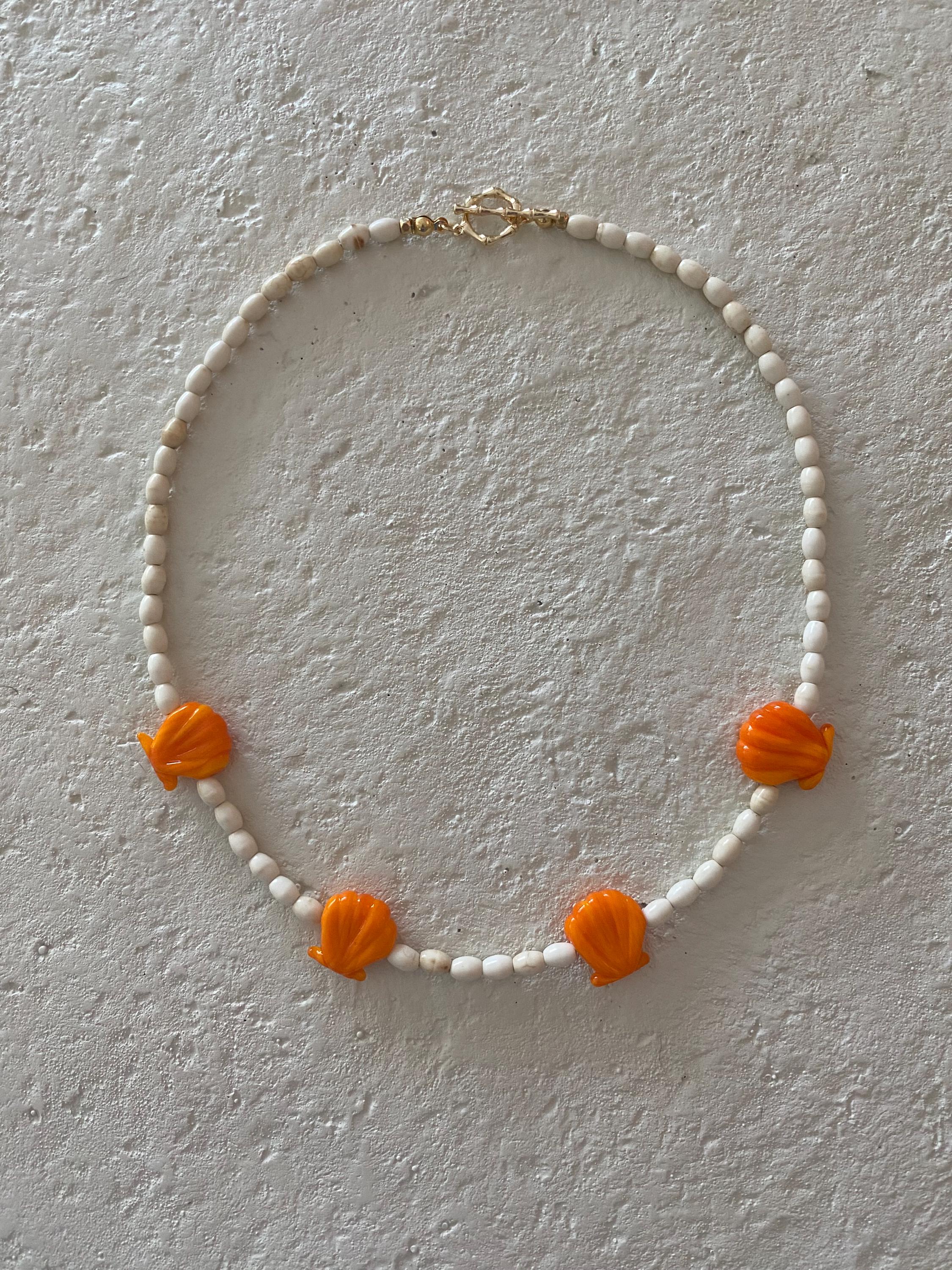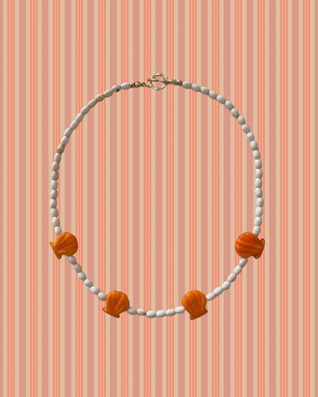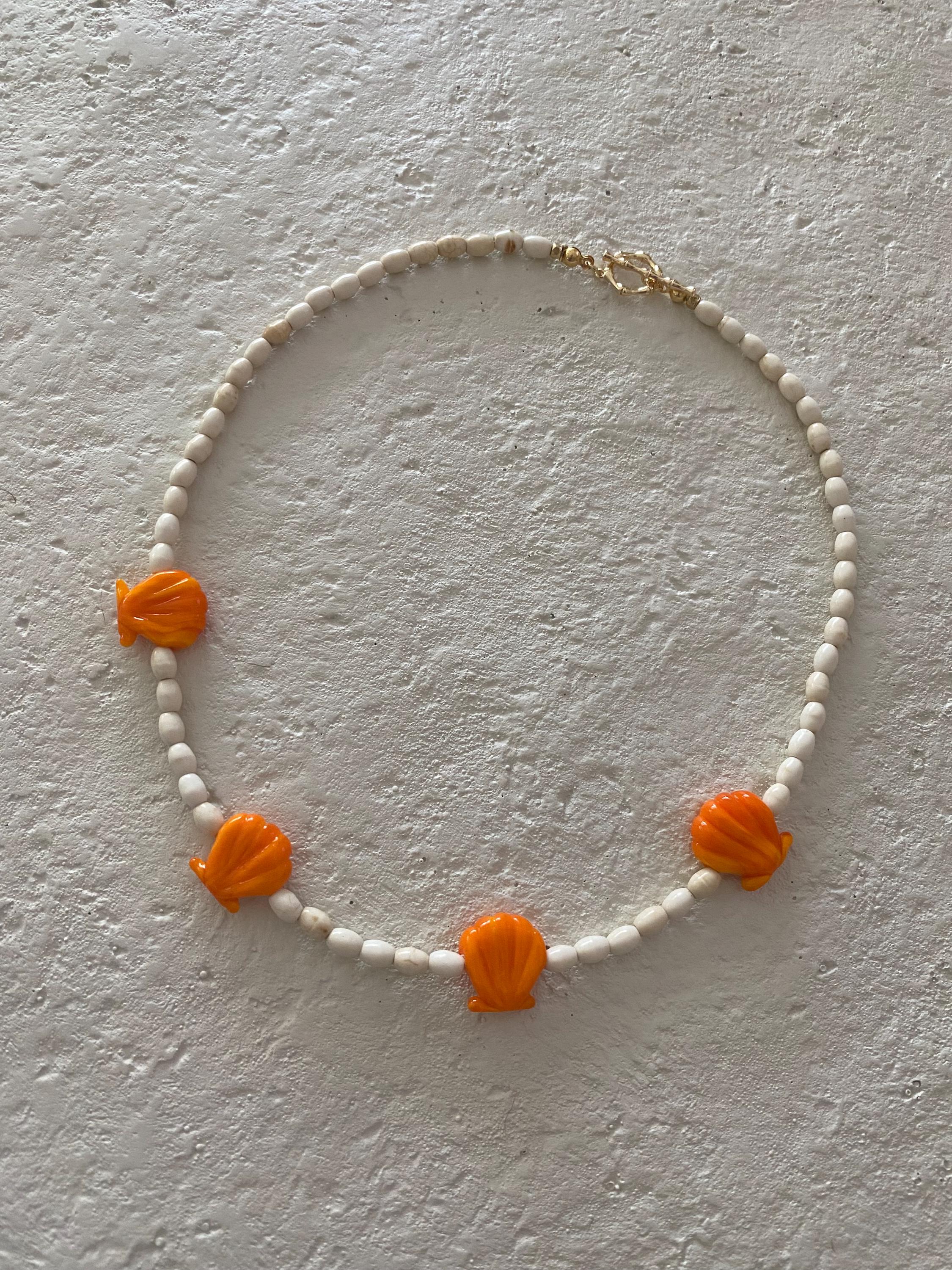 • Materials: Murano glass seashell beads, oval shaped seed beads