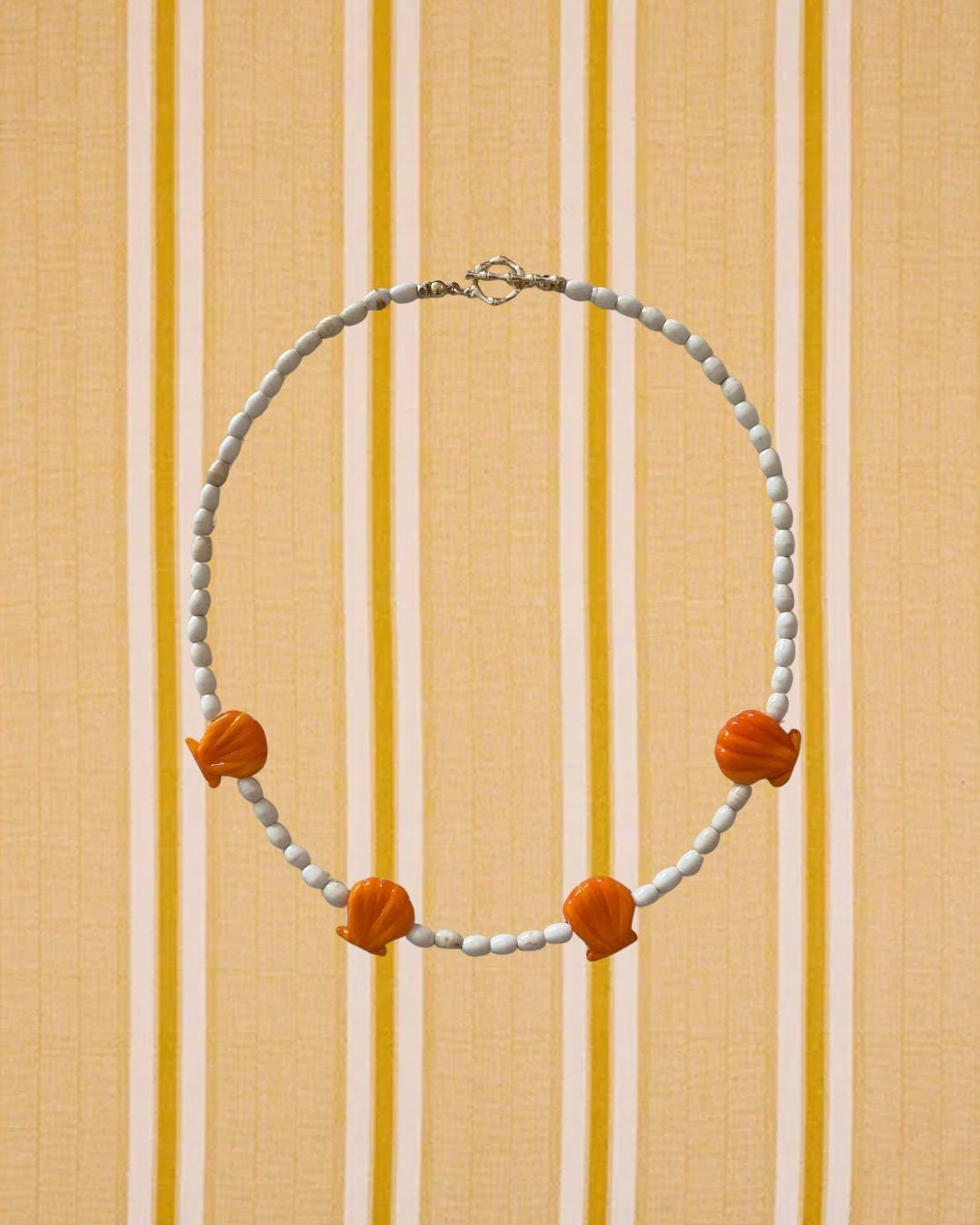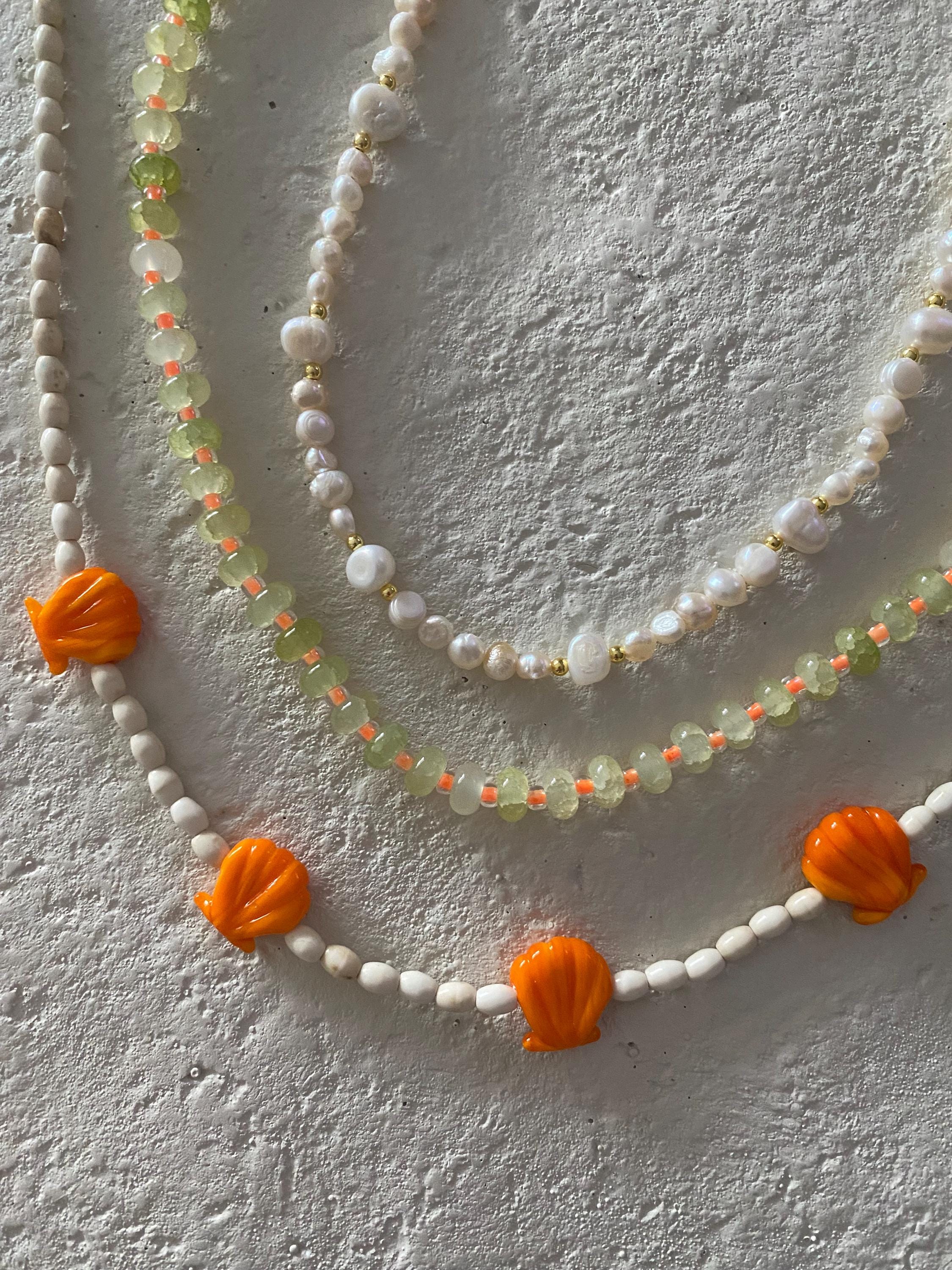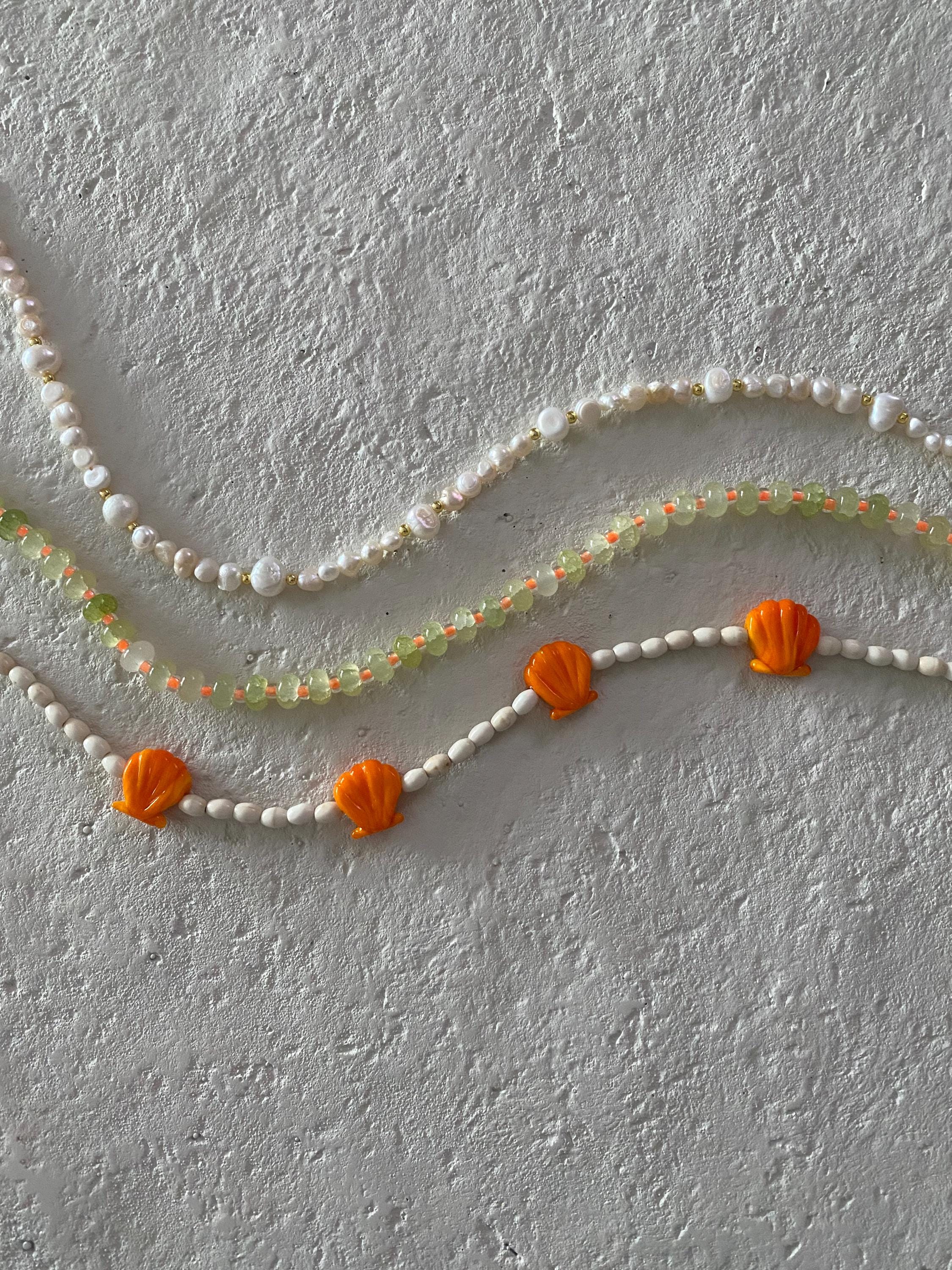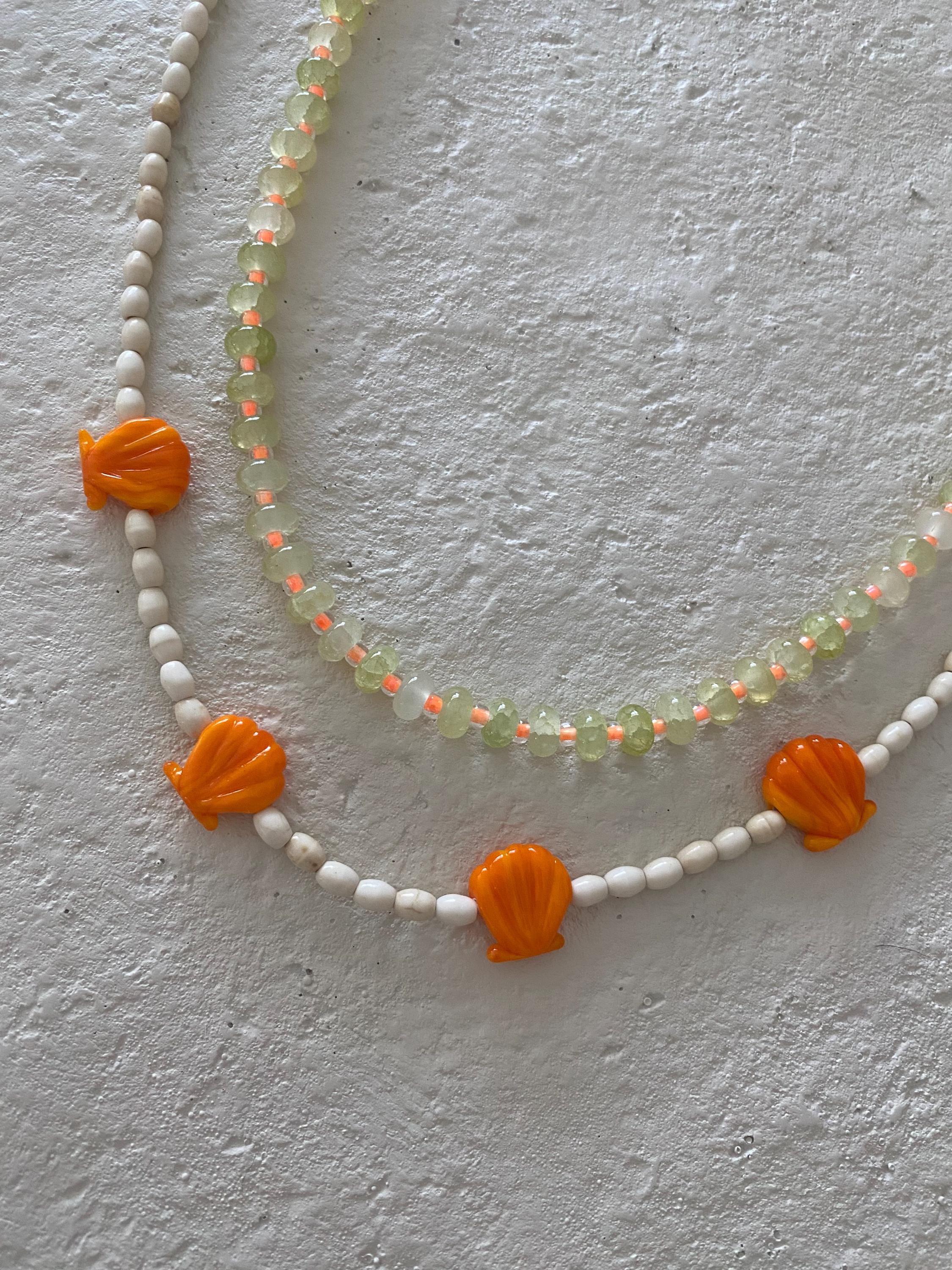 • Materials: Murano glass seashell beads, oval shaped seed beads