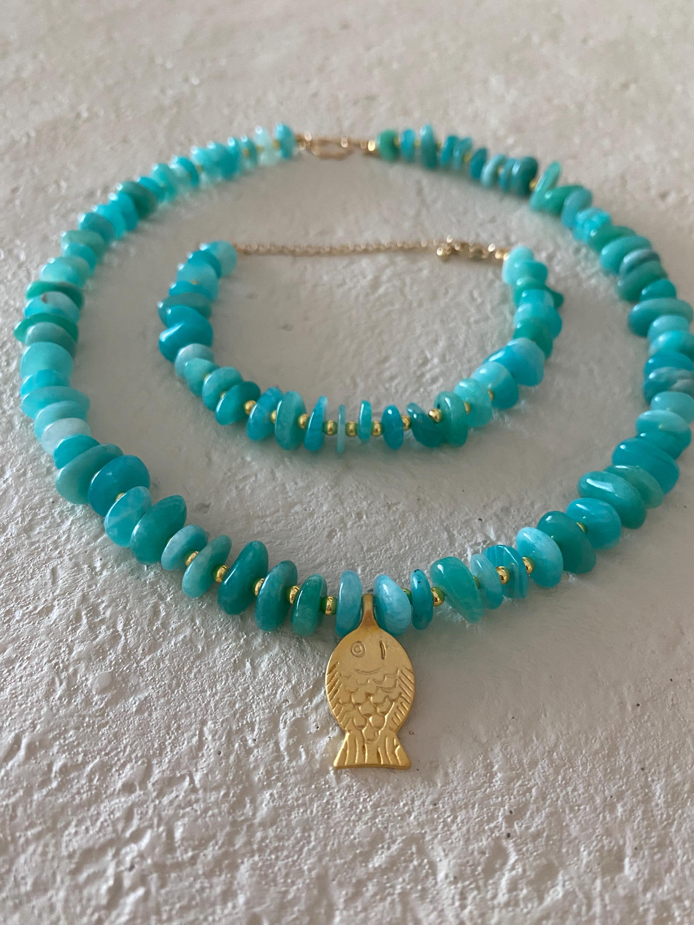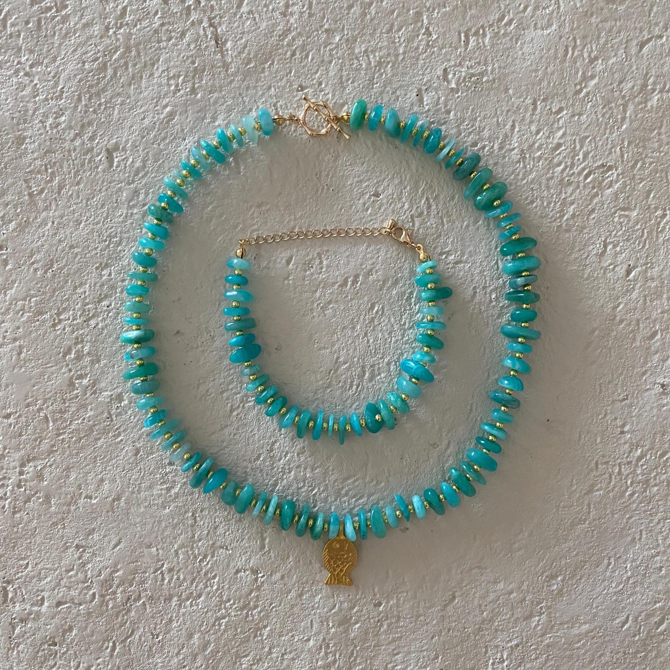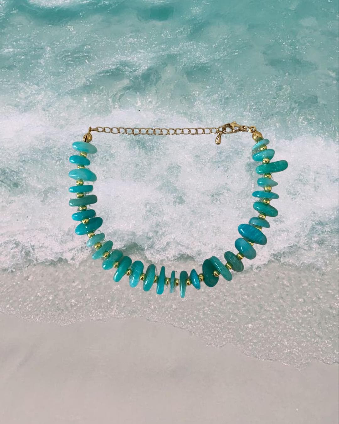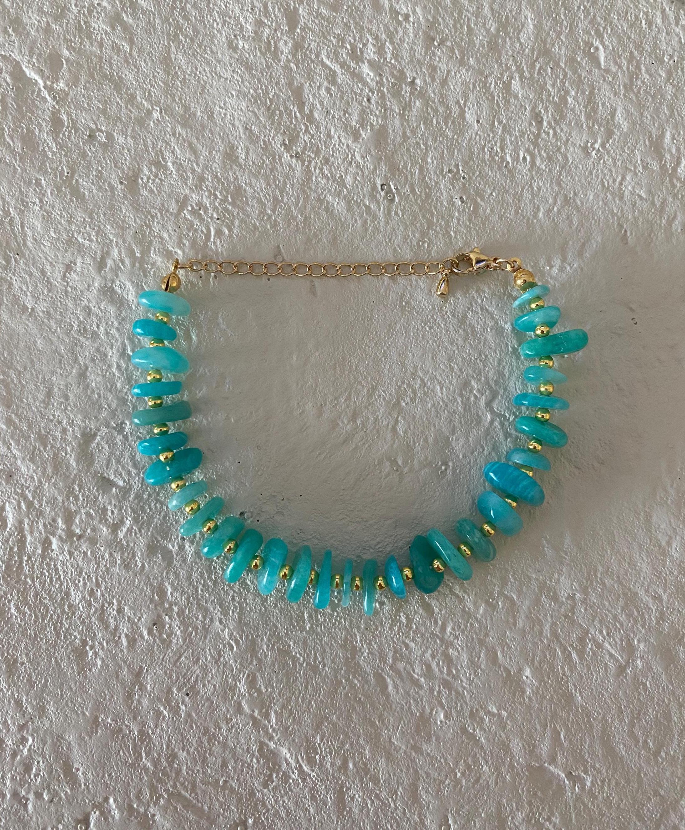 • Materials: Green amazonite pebble nugget beads & gold plated beads