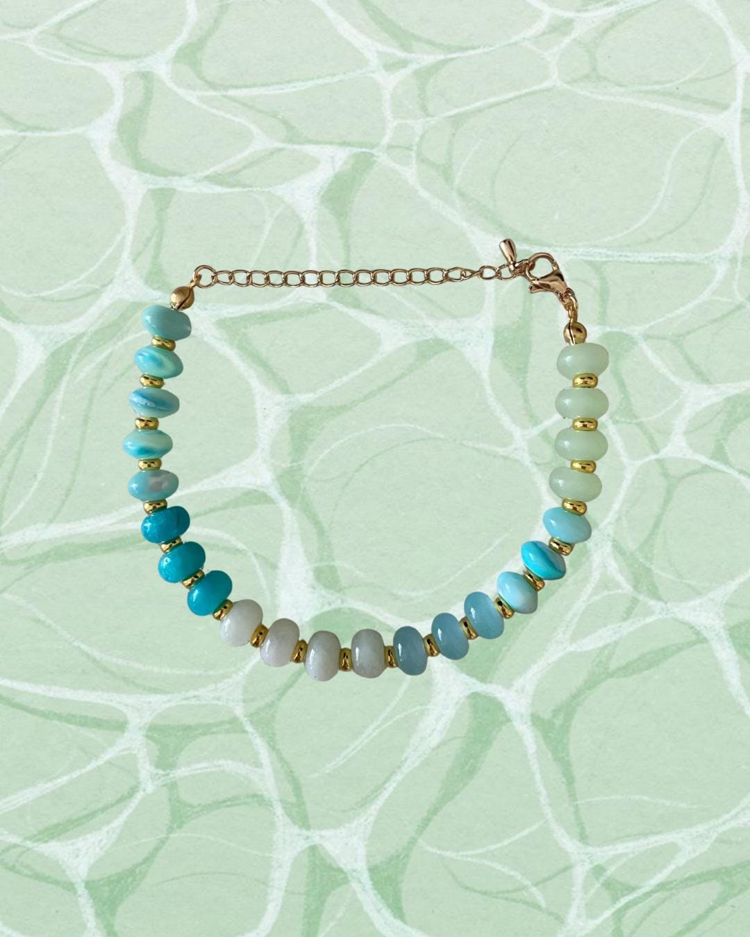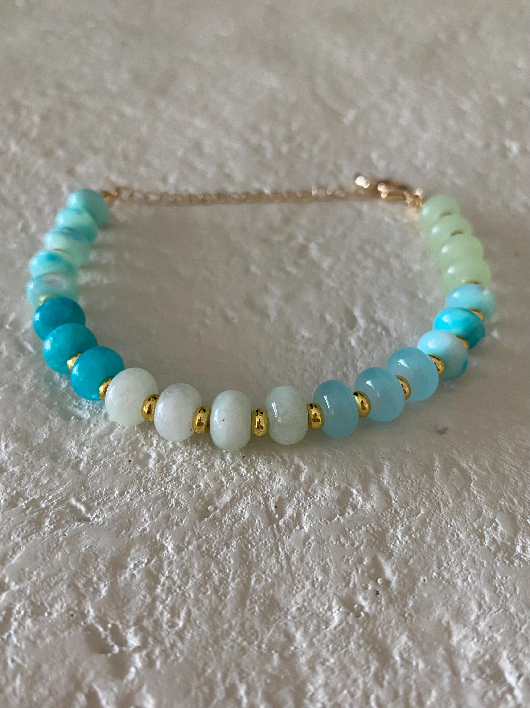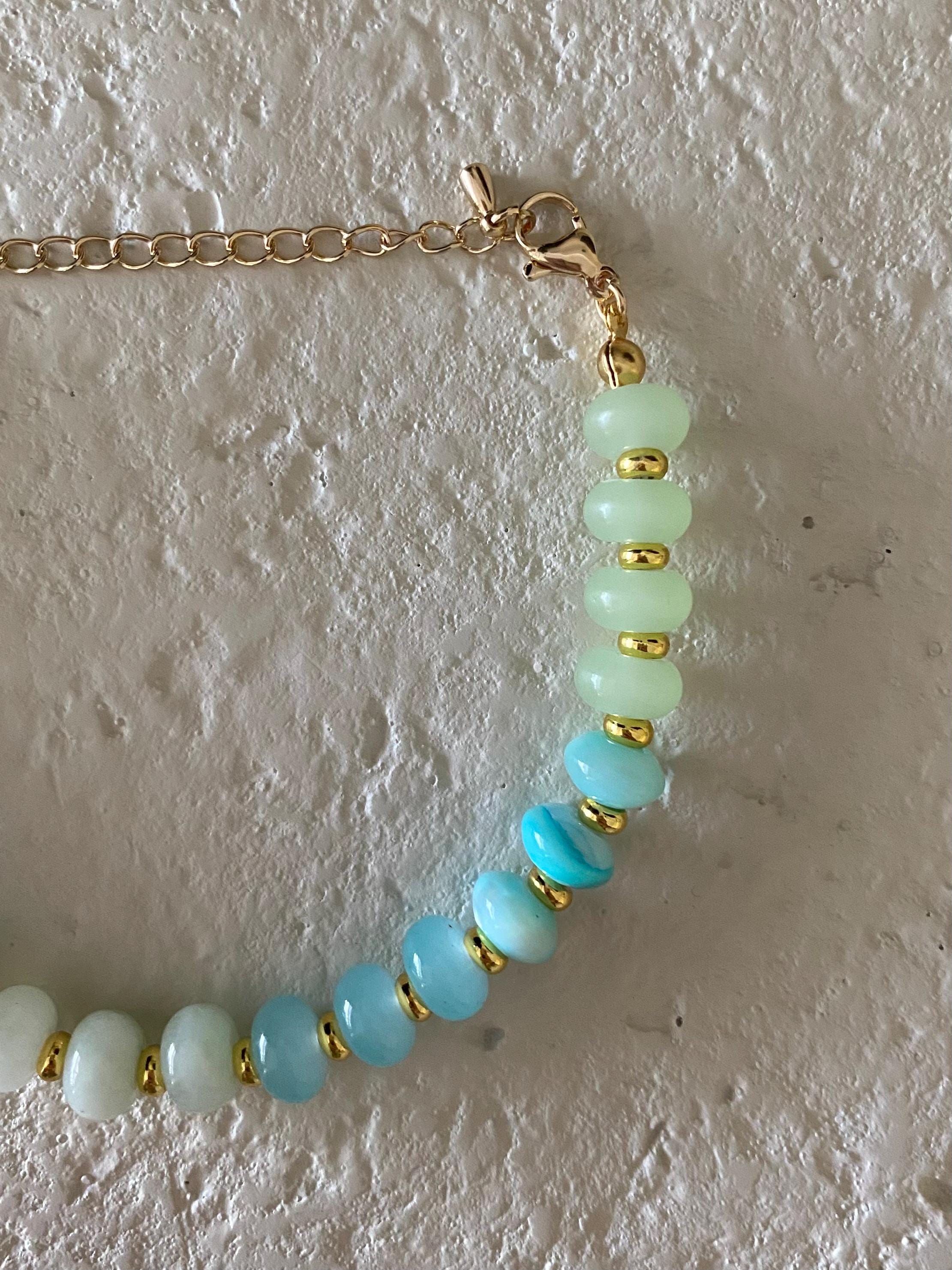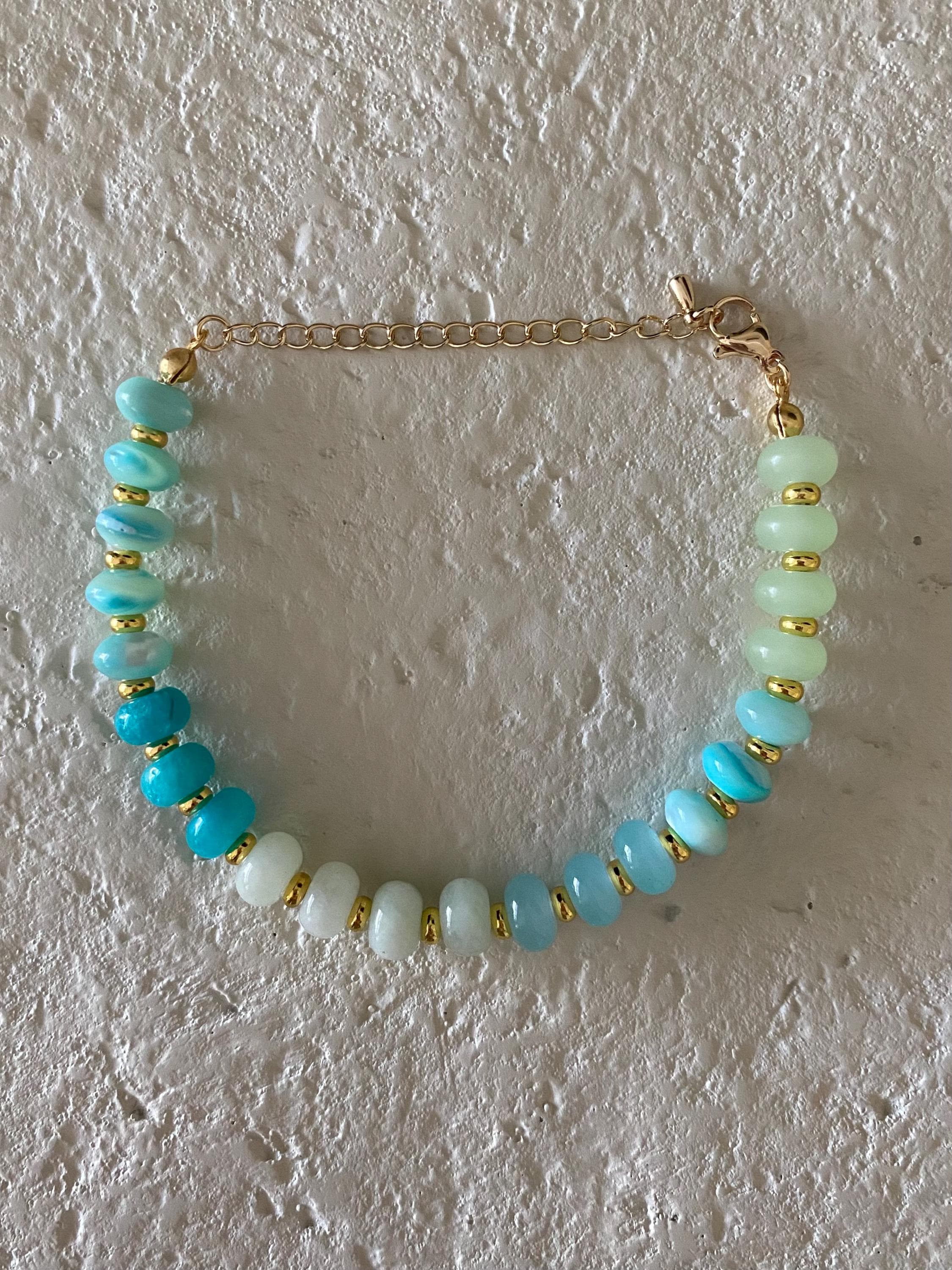 • Materials: Blue & green rondelle beads & gold plated beads