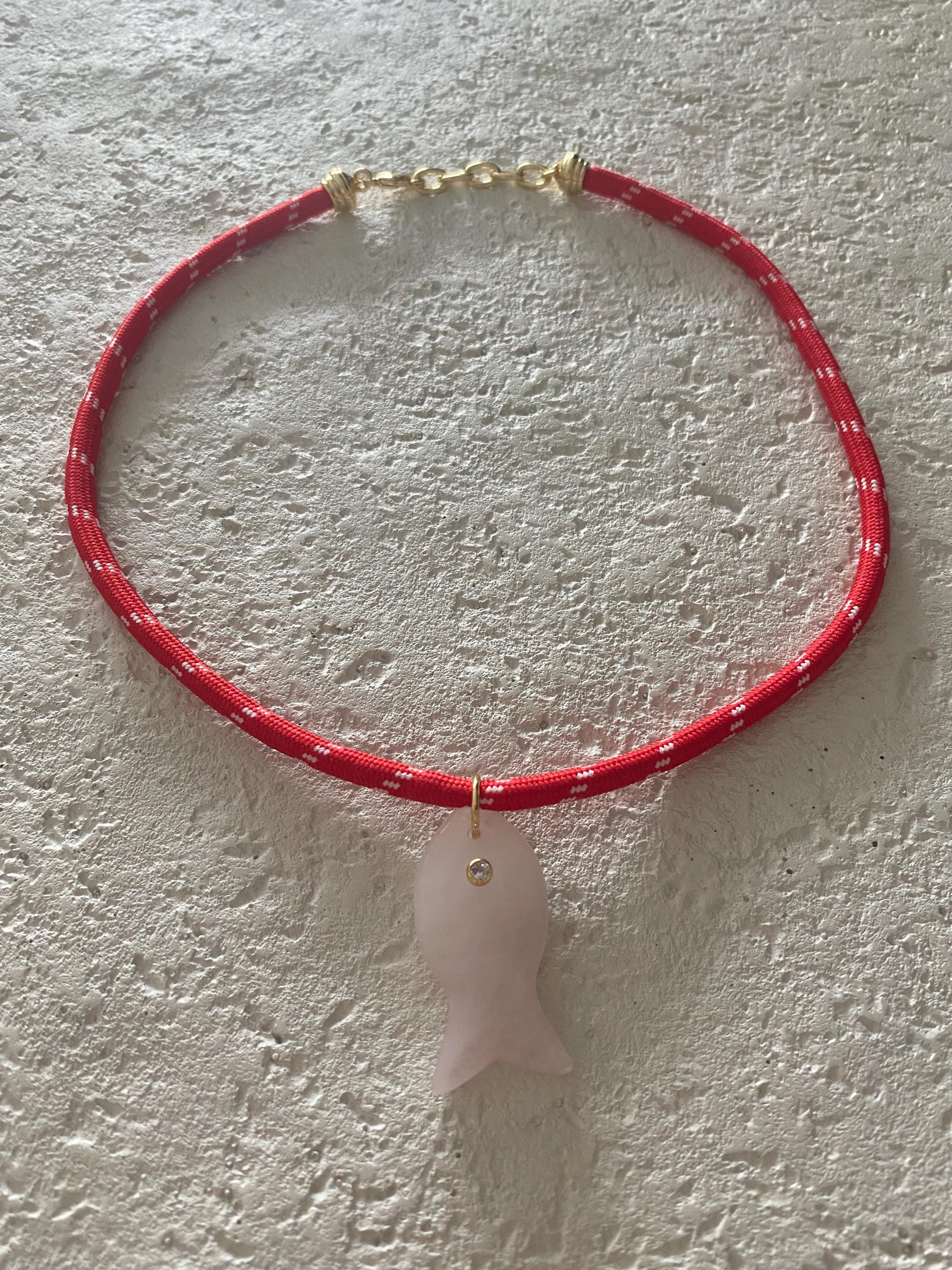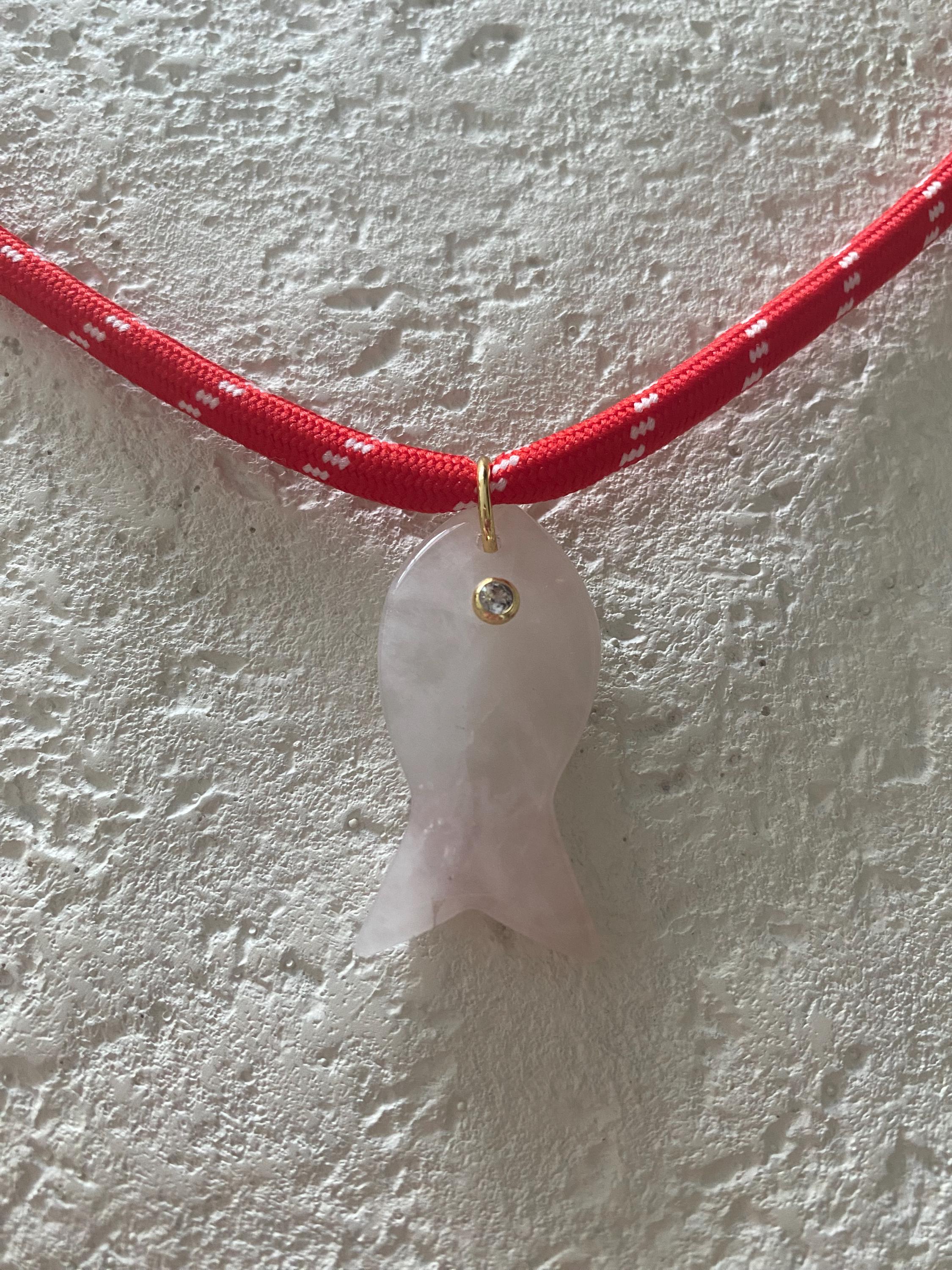 • Materials: 18k gold filled 38.8mm pink quartz gemstone fish pendant (gemstones coloring may vary) & red cord