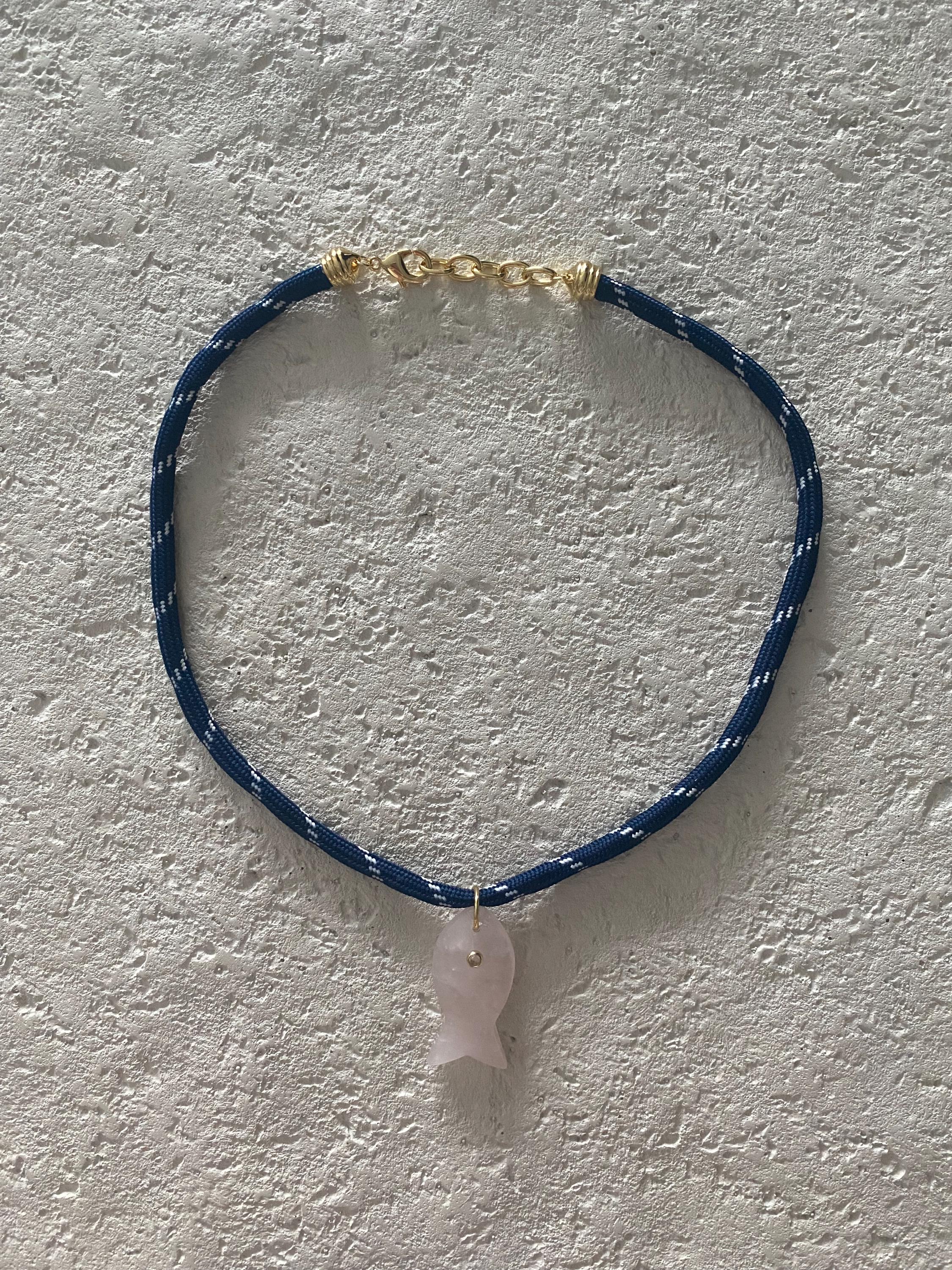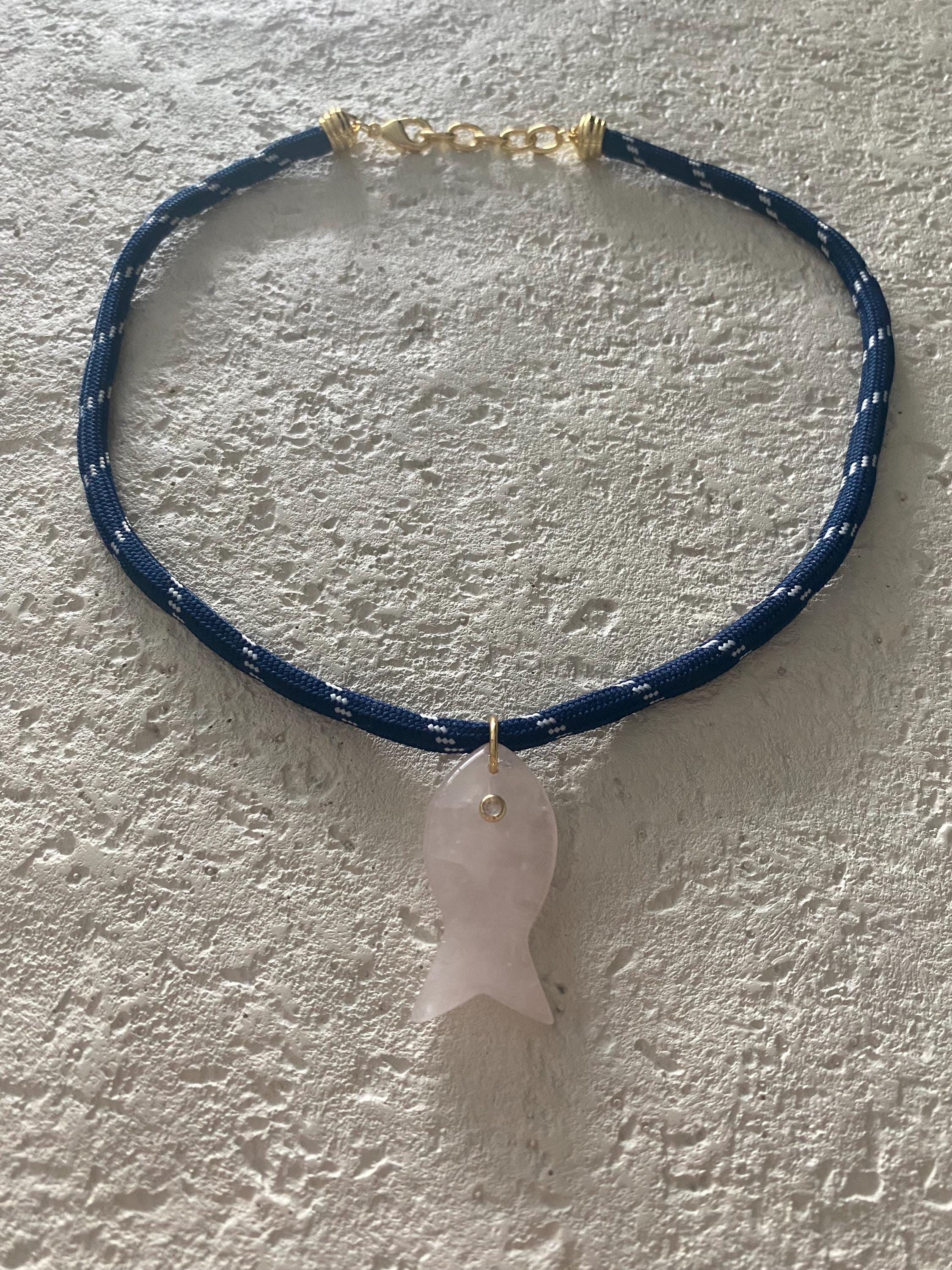 • Materials: 18k gold filled 38.8mm pink quartz gemstone fish pendant (gemstones coloring may vary) & navy cord