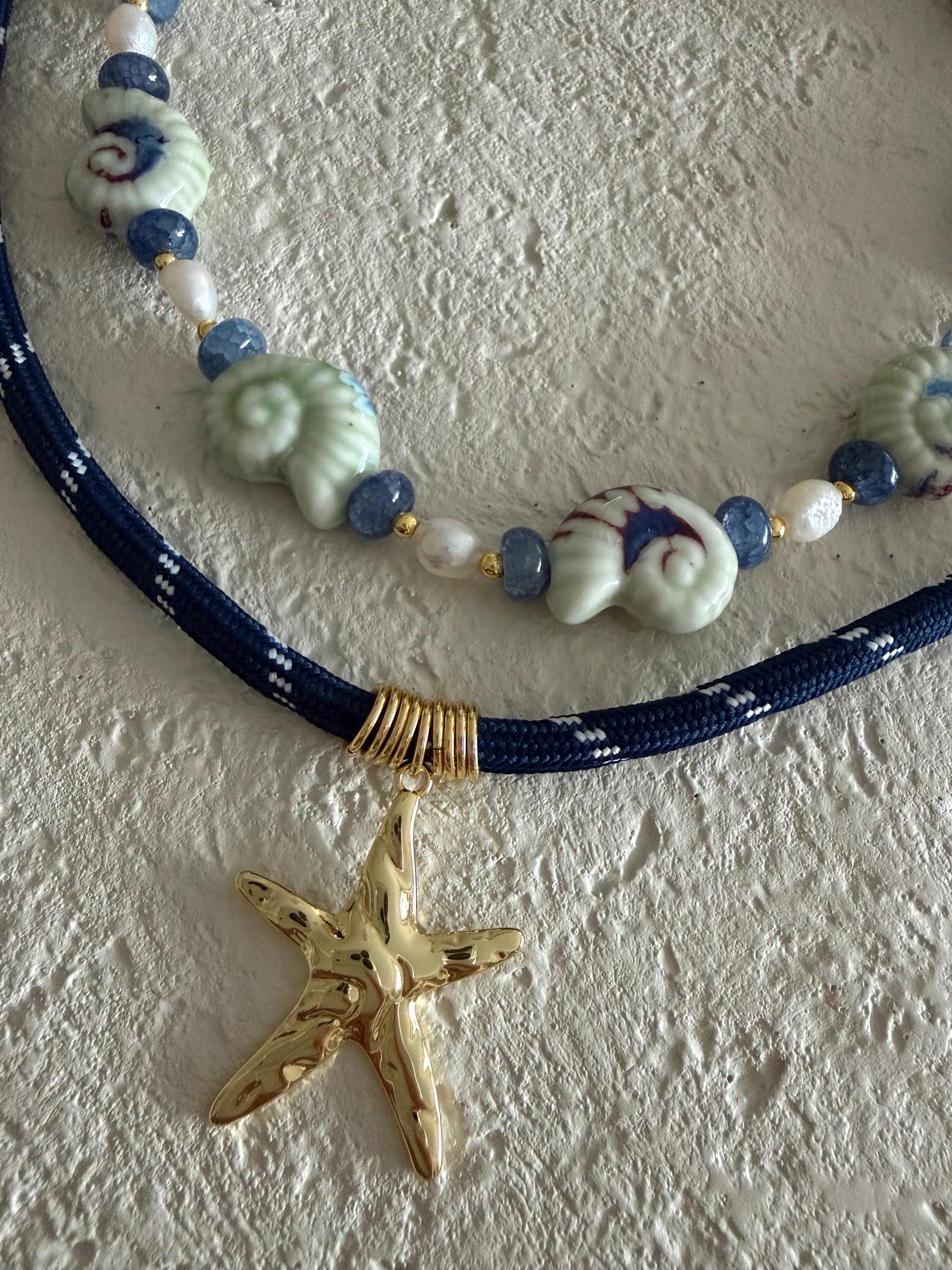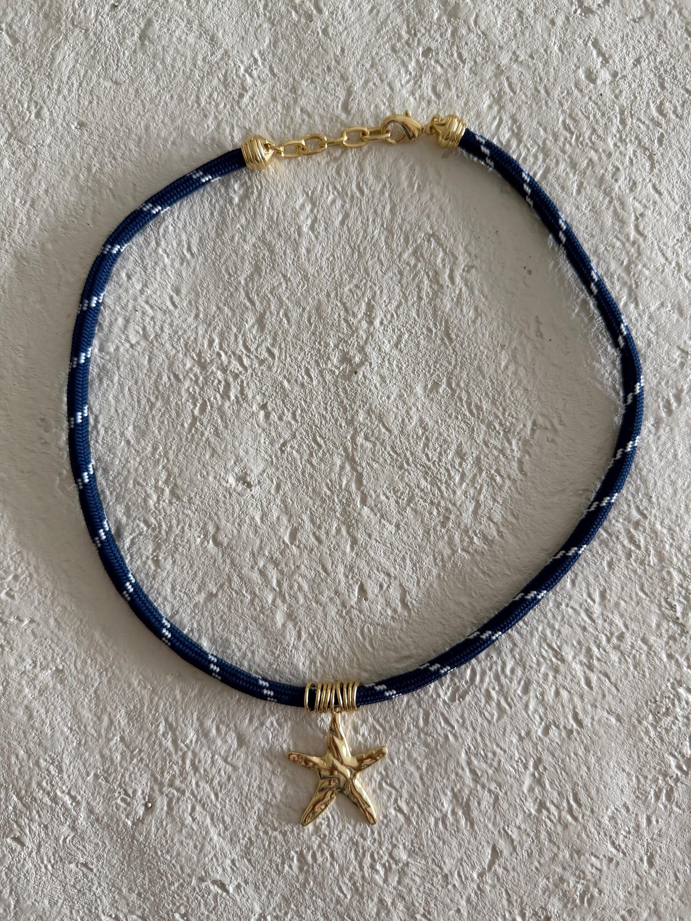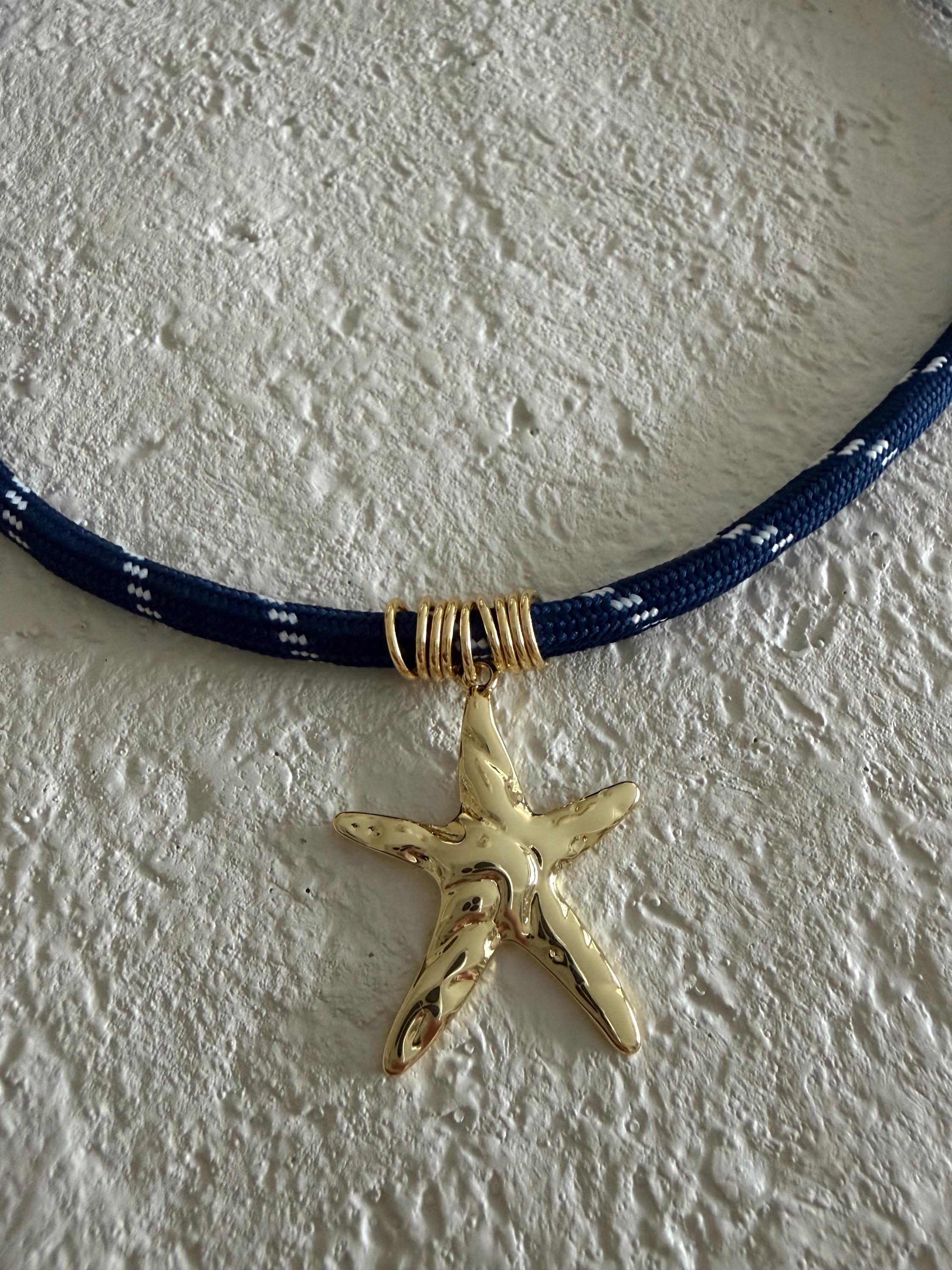 • Materials: Stainless steel 40mm hammered starfish pendant & navy cord