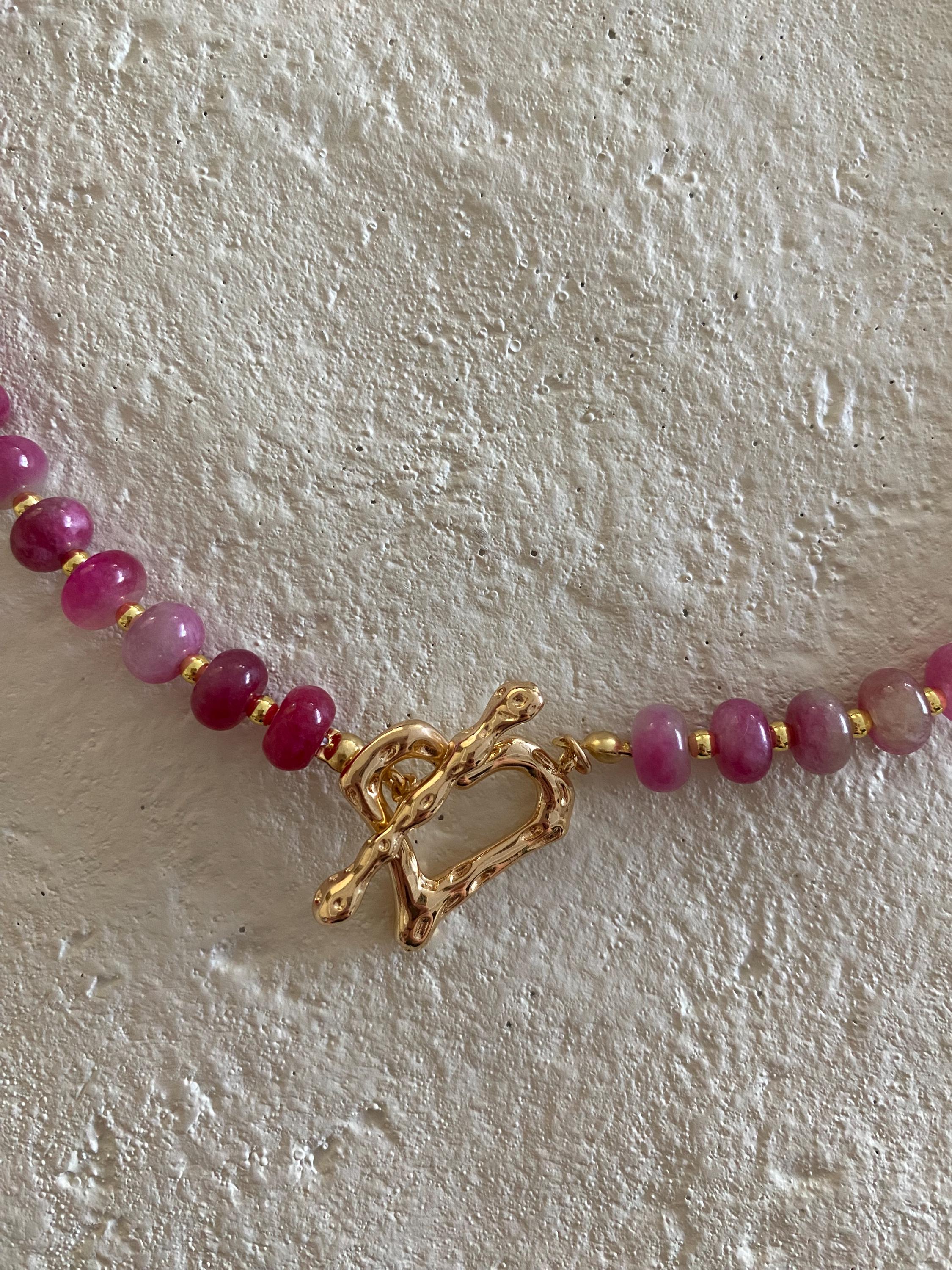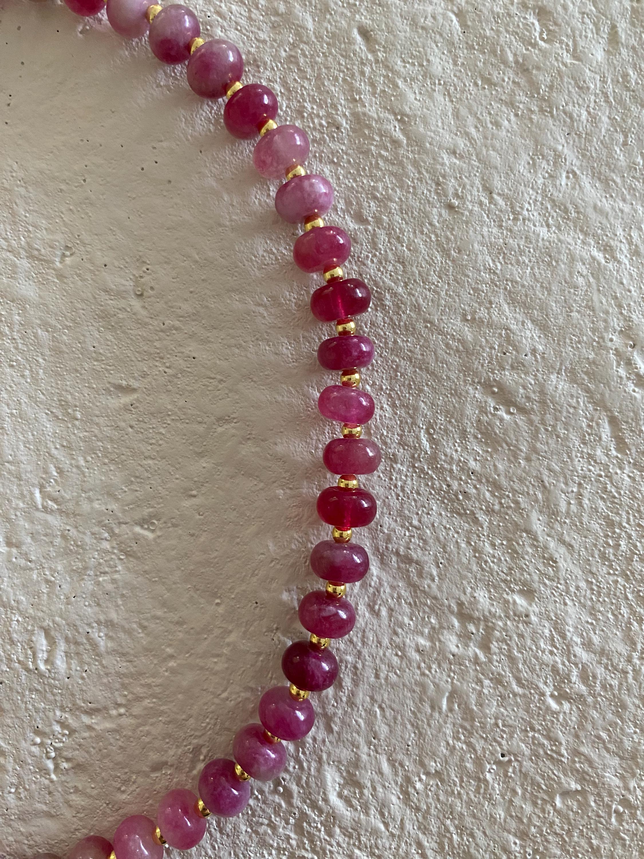 • Materials: Pink tourmaline glass beads & gold plated beads