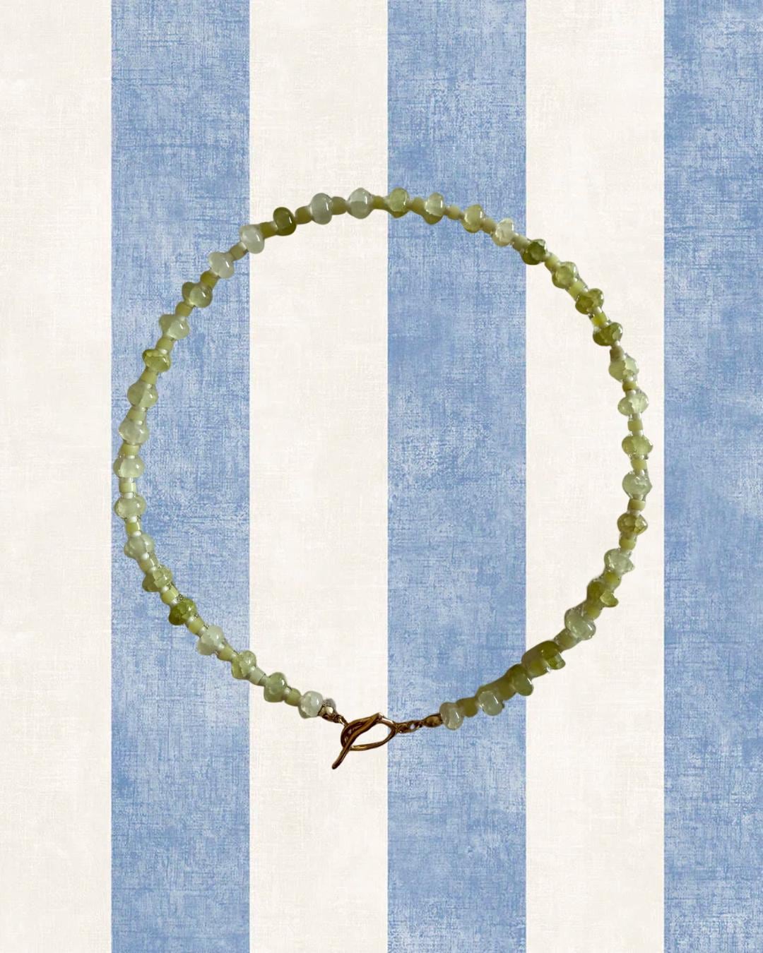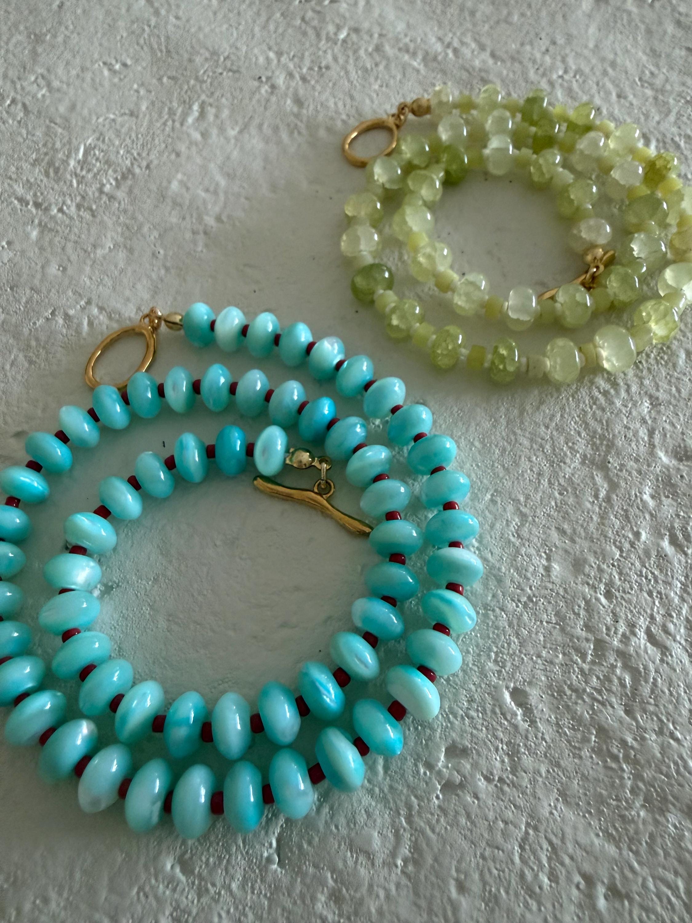 Our jewelry is handcrafted using glass beads, natural stones, wood, and 14k gold plated or stainless steel components. Every piece is made with quality and durability in mind.