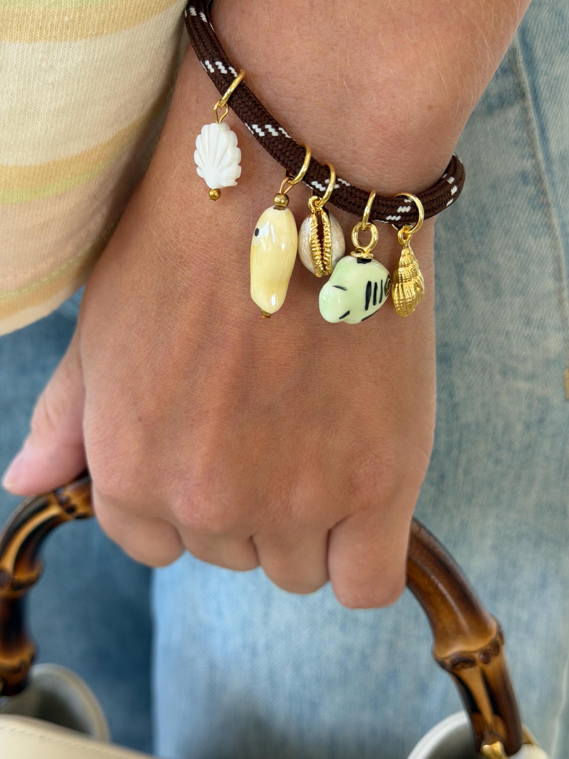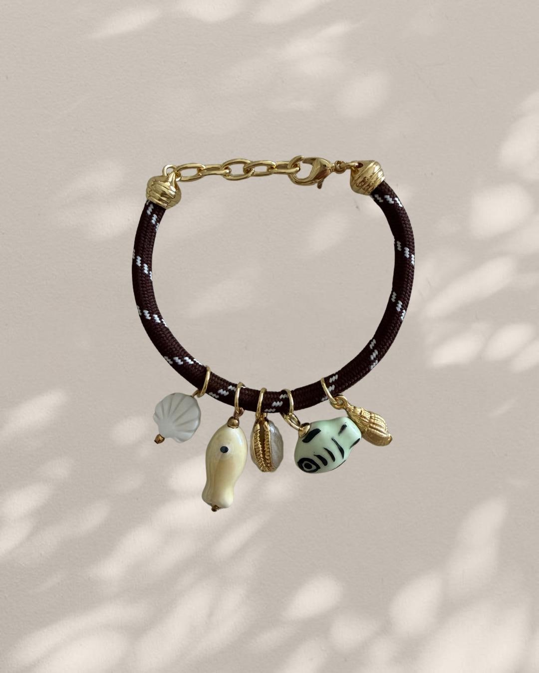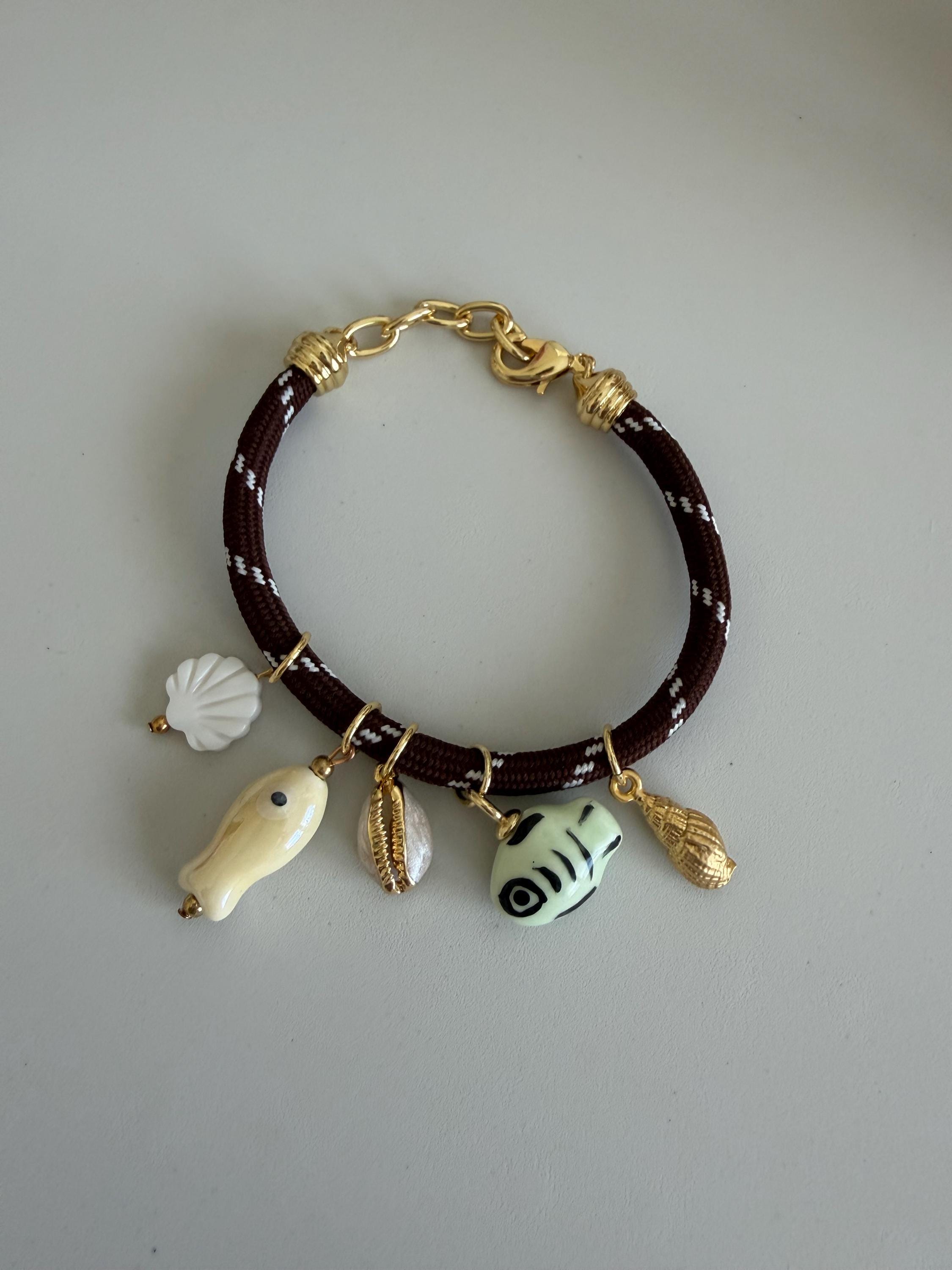 • Materials: Coastal charms (gold plated) & brown paracord