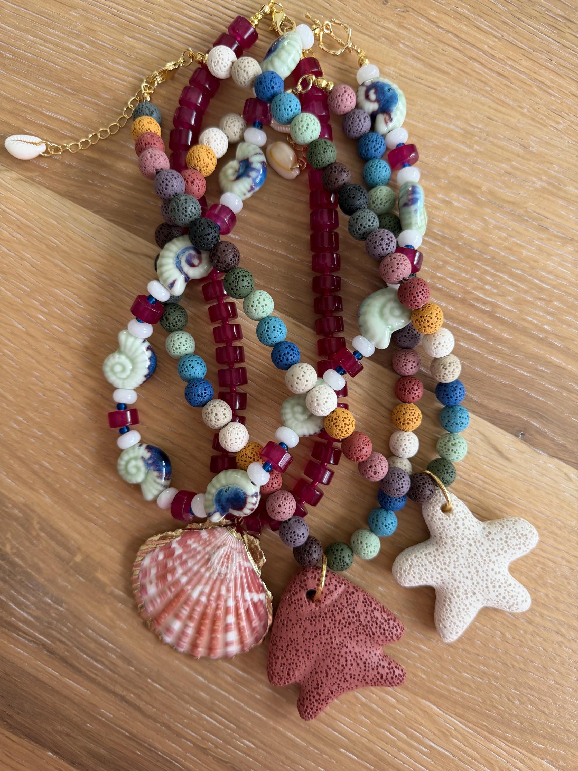 Our jewelry is handcrafted using glass beads, natural stones, wood, and a mix of gold-plated, gold-filled, and stainless steel components. Each piece is thoughtfully created with quality, durability, and everyday wear in mind.