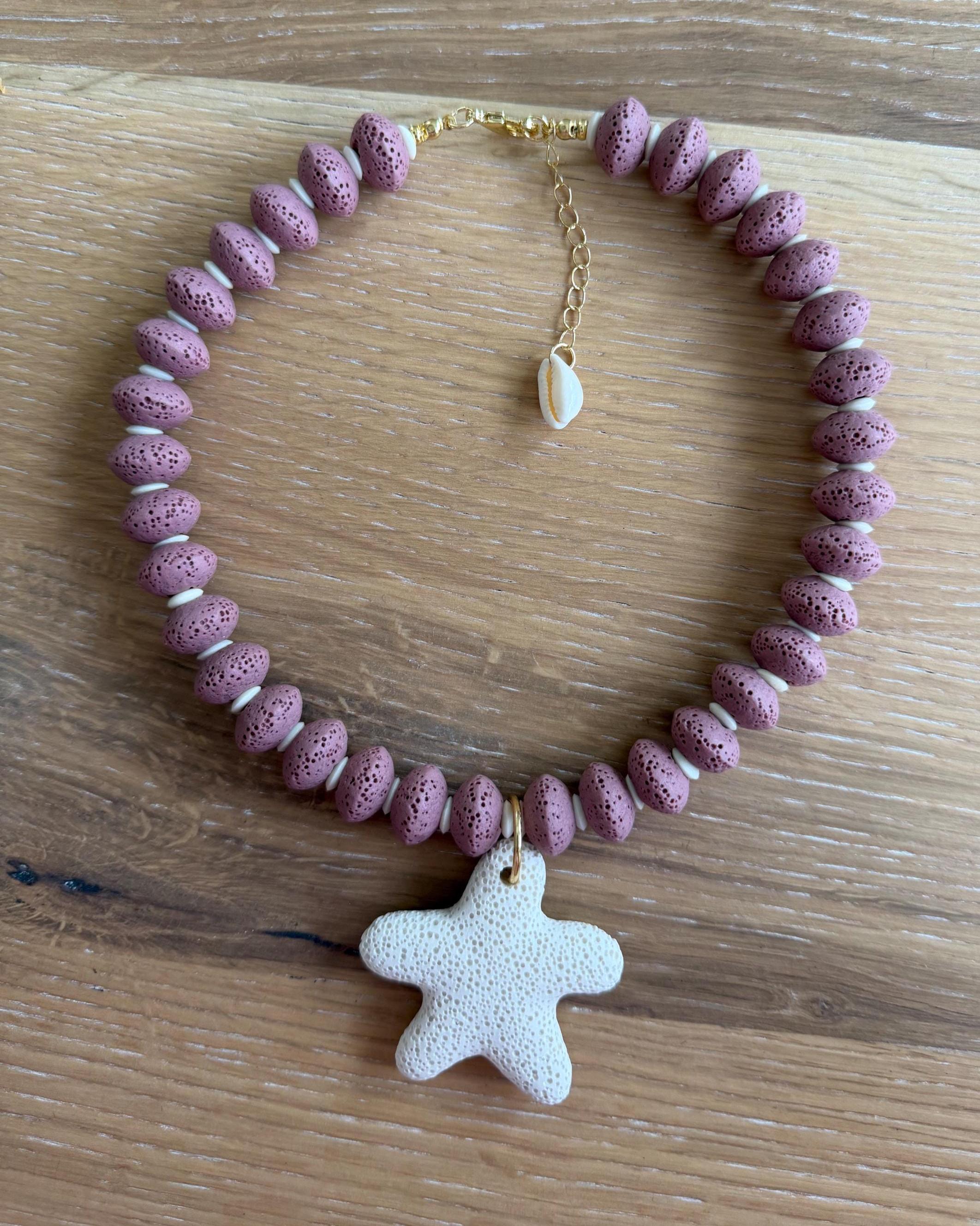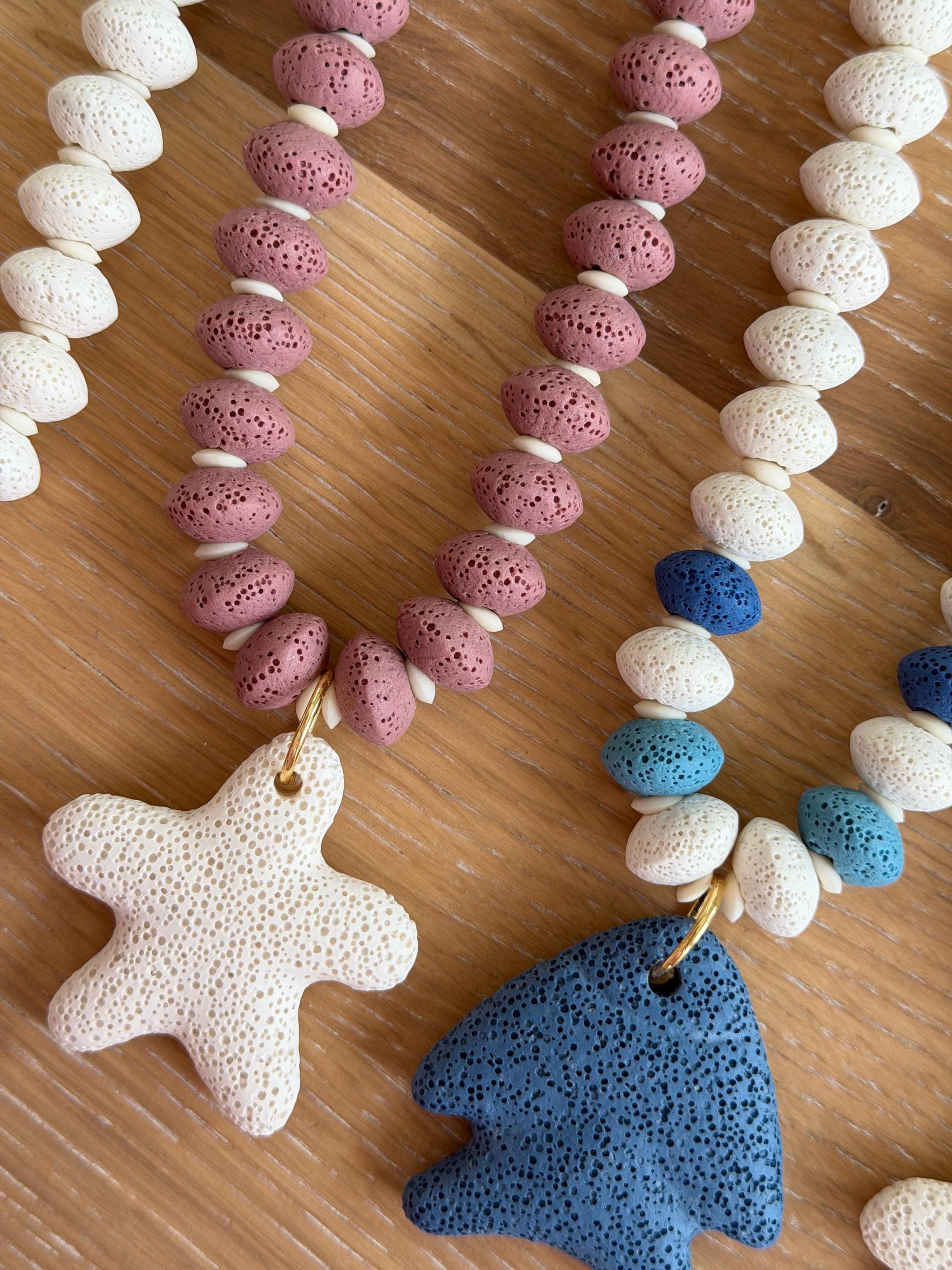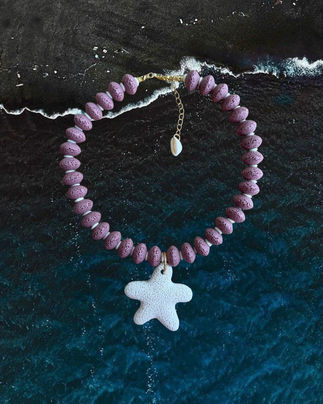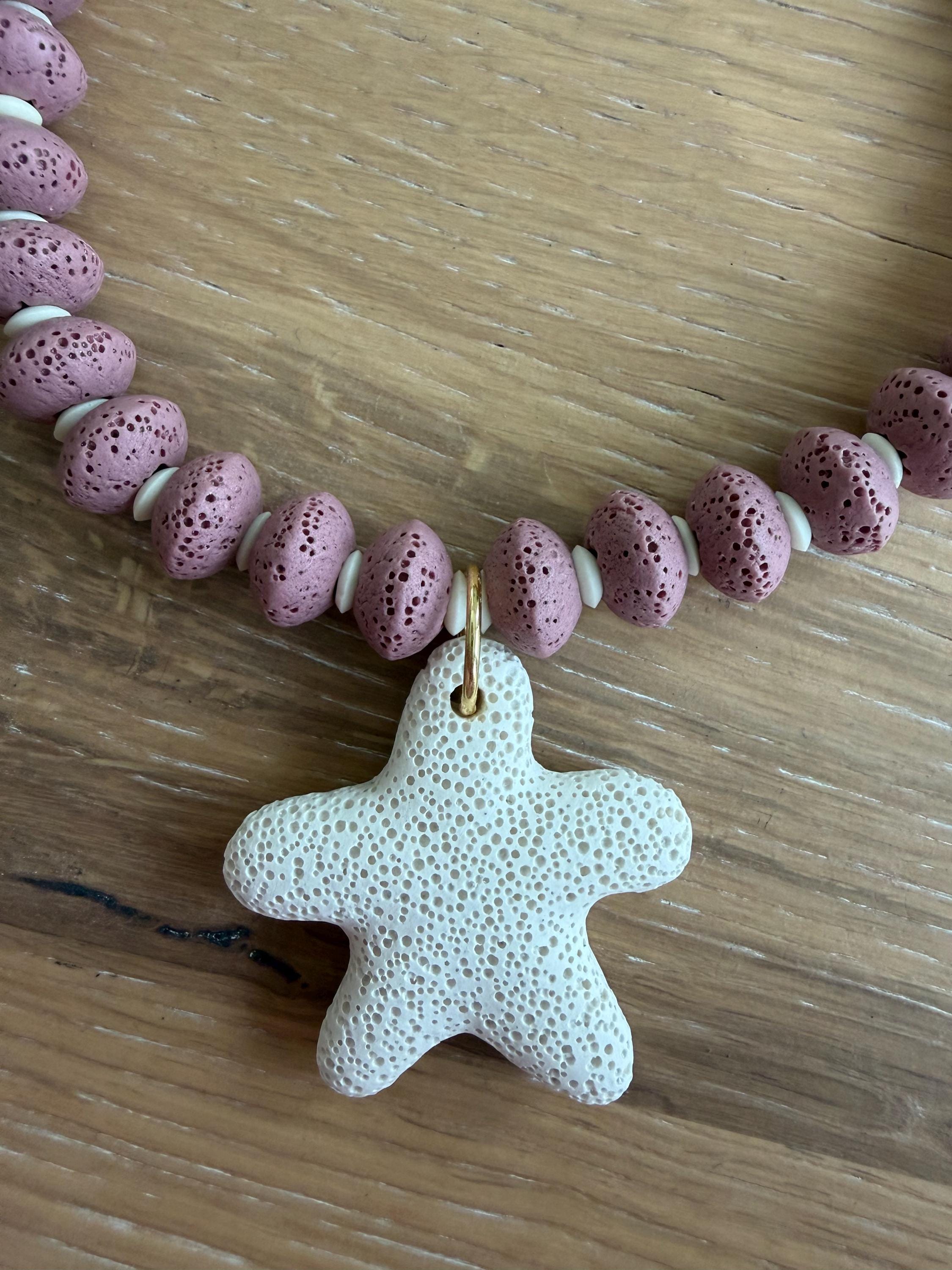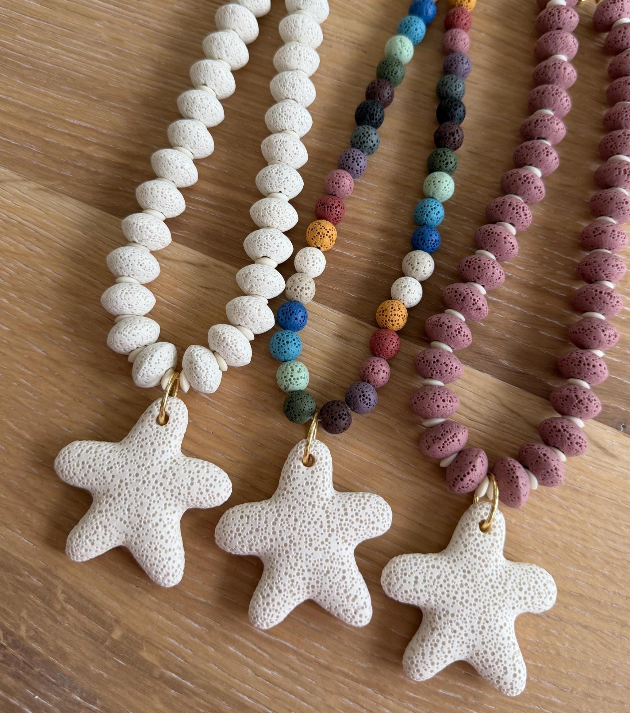 • Materials: Lava stone starfish pendant, lava stone beads & carved bone beads