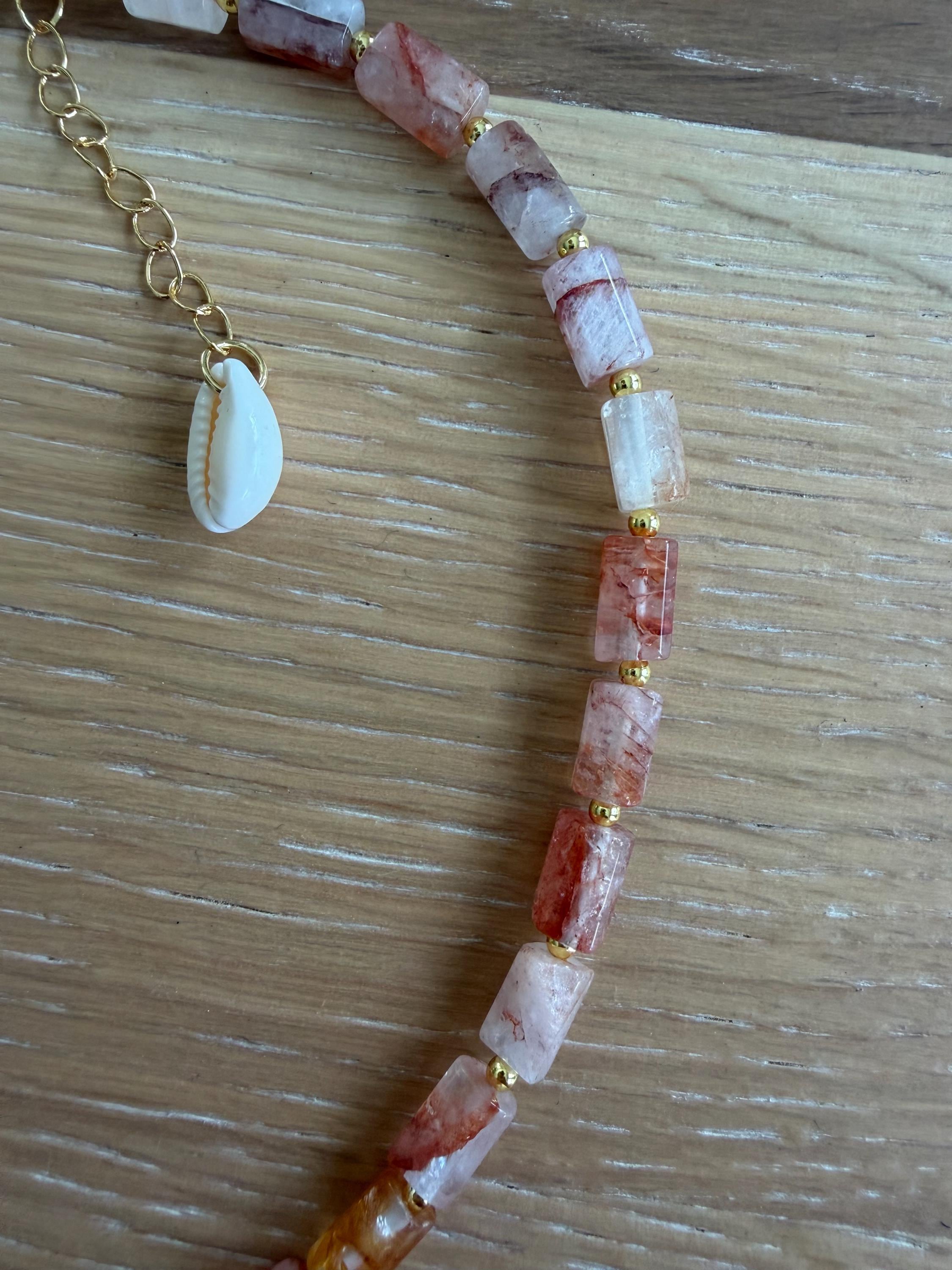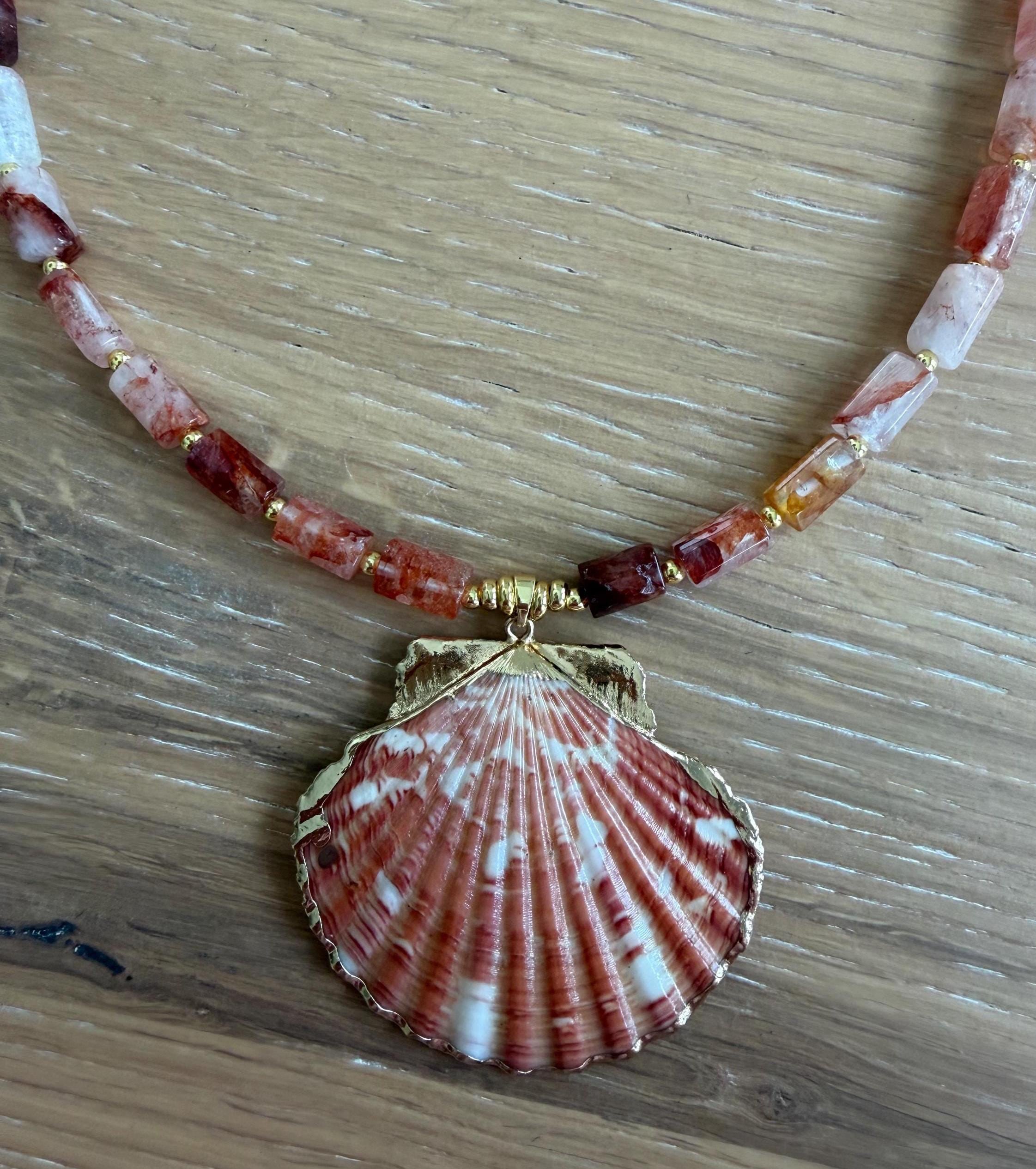 Hematoid Quartz & Gold Scallop Shell Necklace